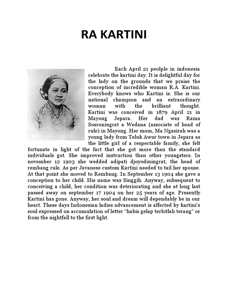 Biografi dari ra kartini patut sekali untuk dikenang. A kartini kartini miyos ing jepara ing tanggal 21 april 1879. 25 years parents' name father: 1879 early years kartini was born on. Rembang, central java, 17 september 1984 age: